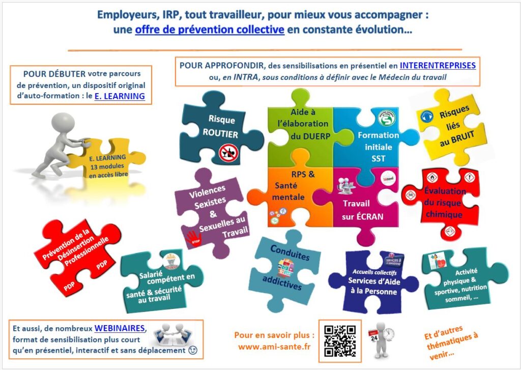 Des questions ? D’autres souhaits de thématiques ? Exprimez-les en nous écrivant s.v.p. sur contact@ami-sante.fr ou bien interrogez en proximité votre équipe santé-travail locale qui aura à coeur de vous renseigner au mieux et dans les meilleurs délais.